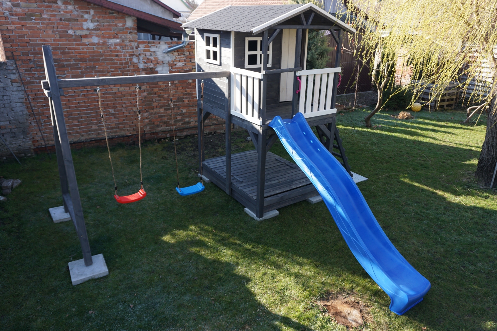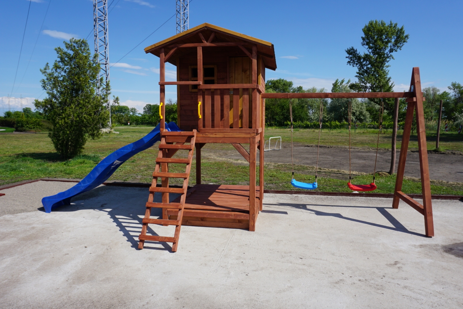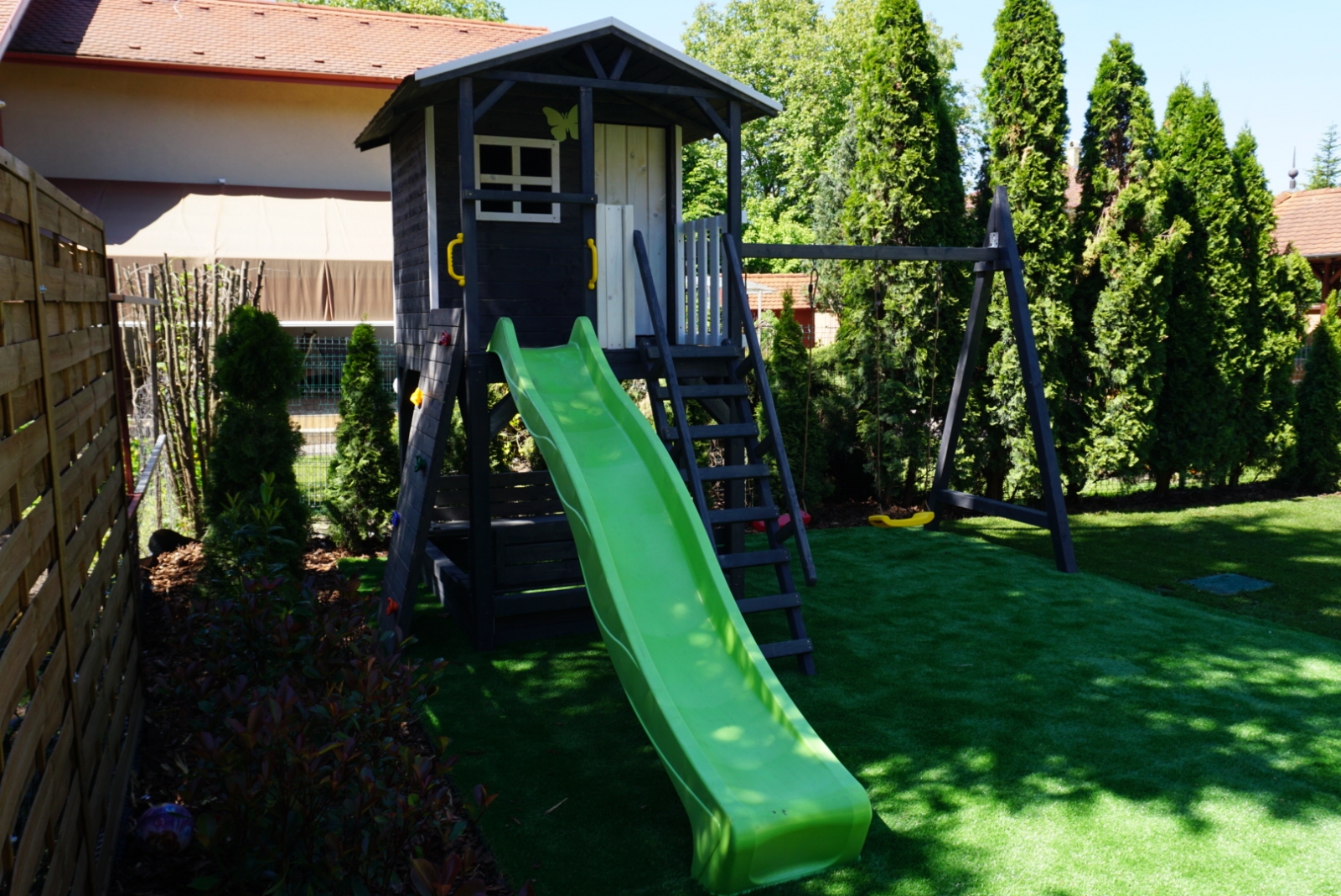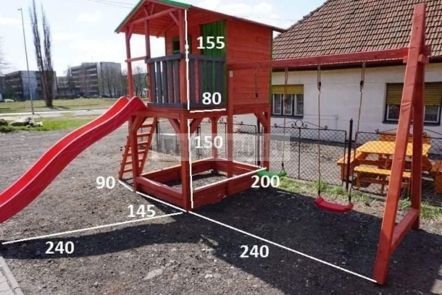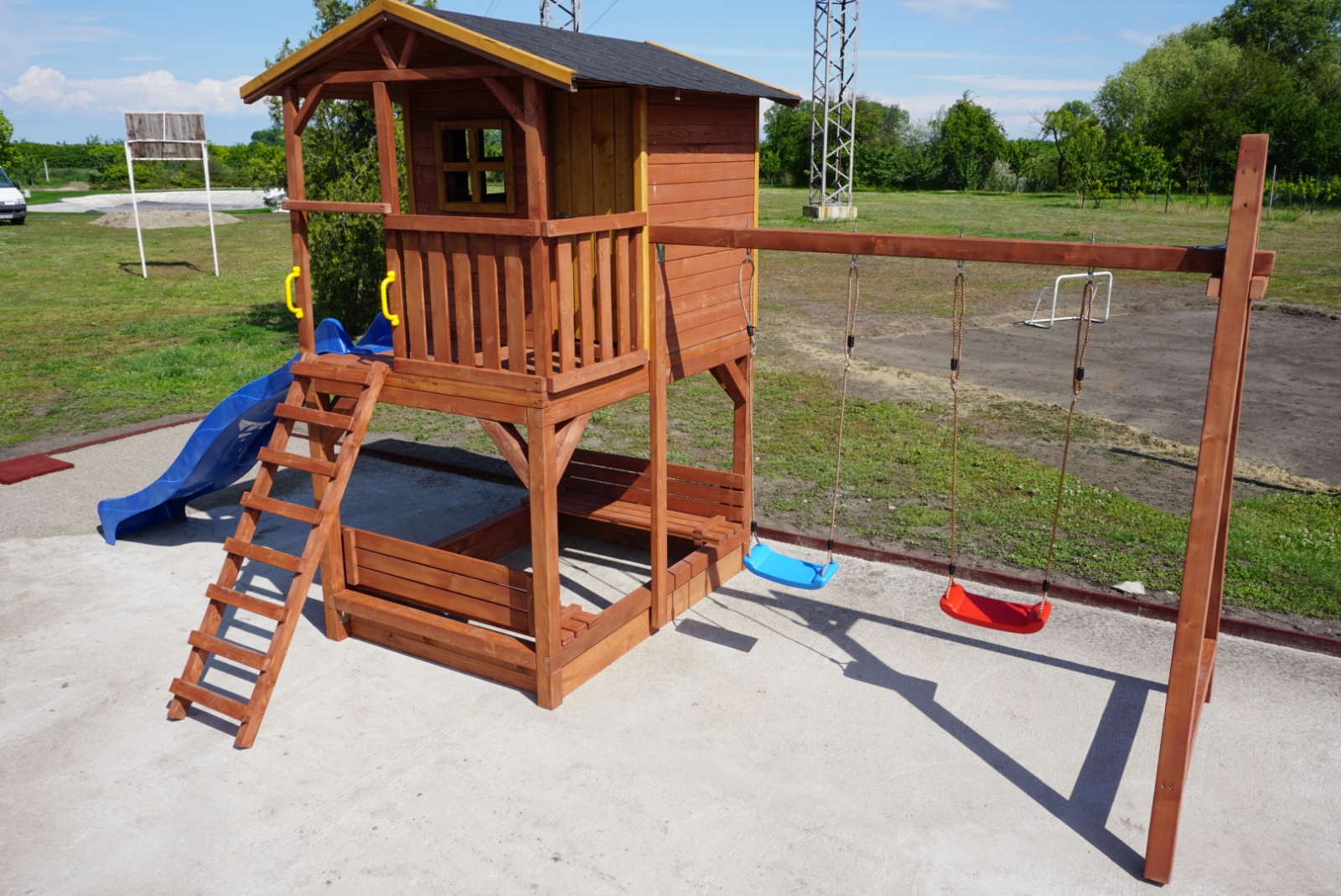 Házikós fa játszótér , csúszdával,hintával,mászófallal