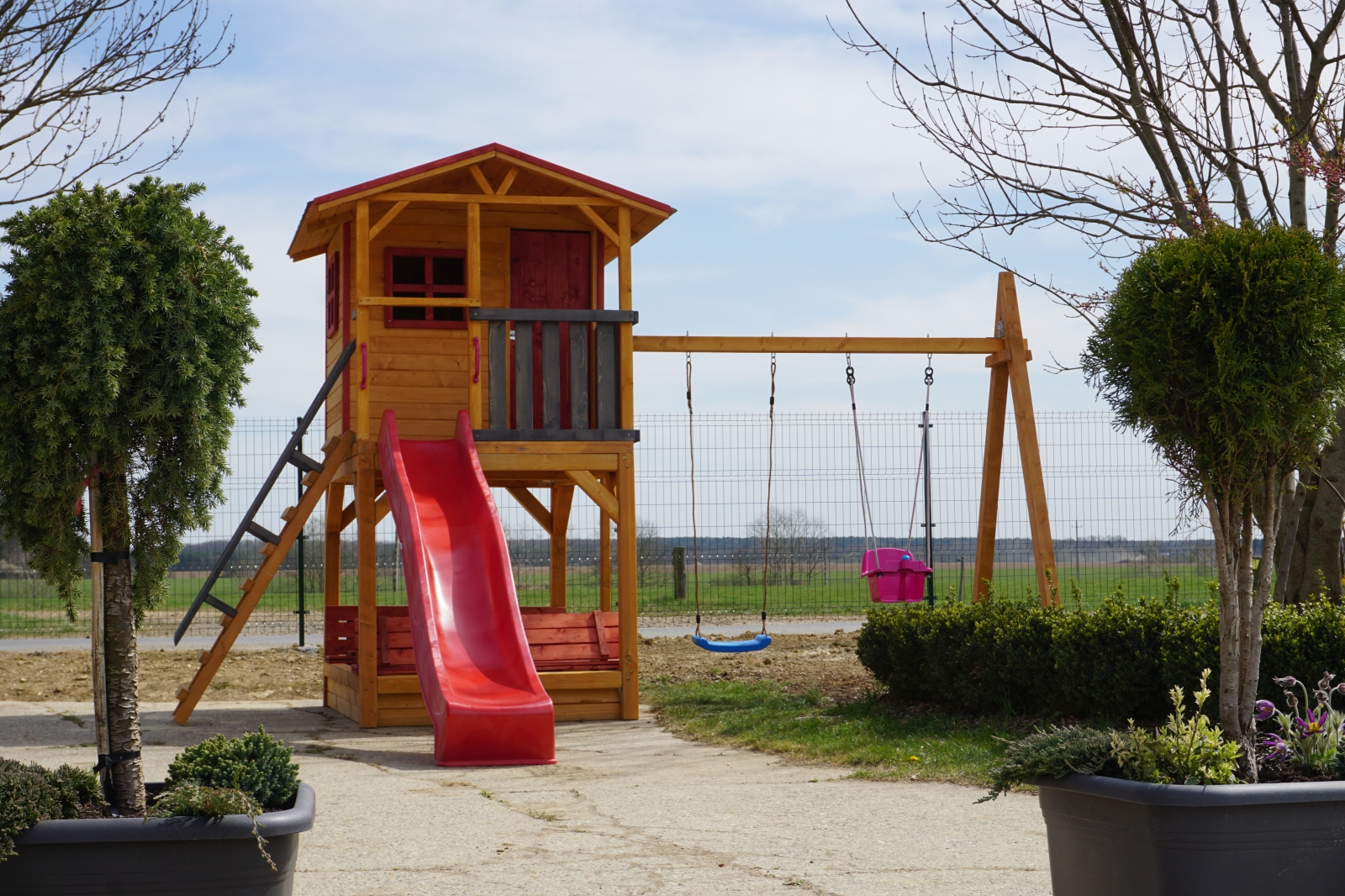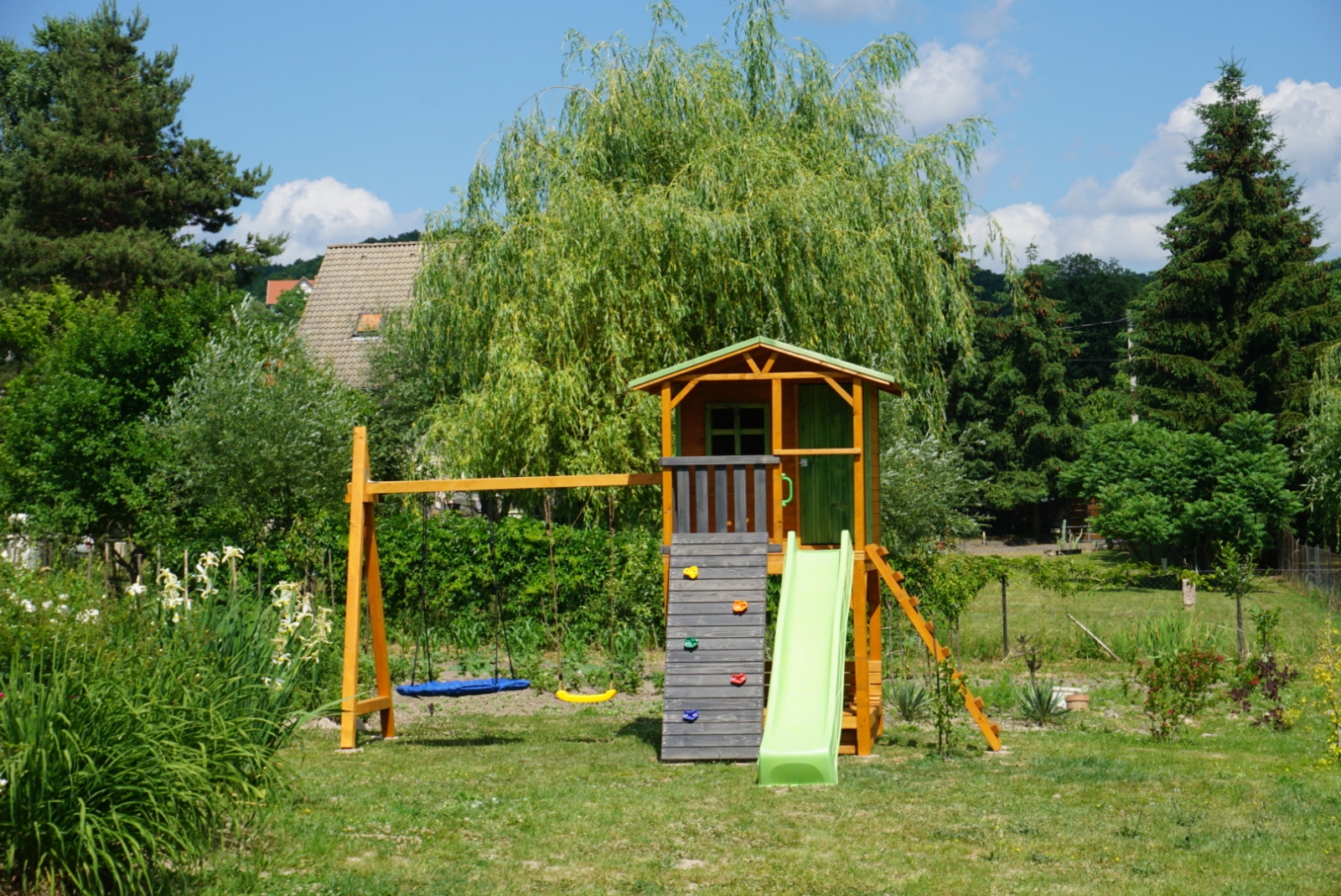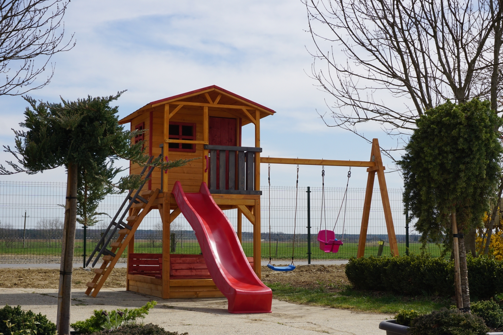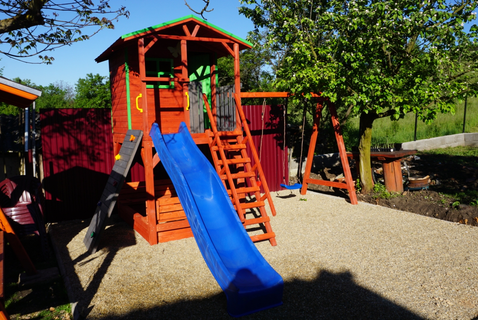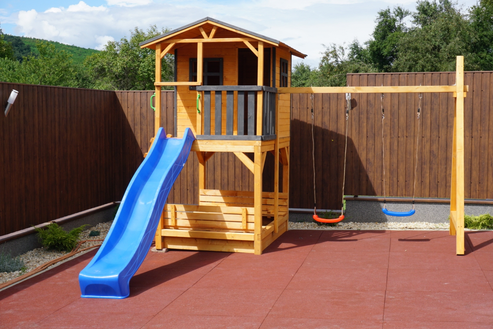 Házikós fa játszótér , csúszdával,hintával,mászófallal