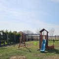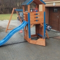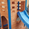 Torony: 120 x 120 cm ,alatta ugyan ekkora házikó homokozóva, 2 ,5 m csúszda és két kiállásos hinta állvány  2 db  laphintával .
